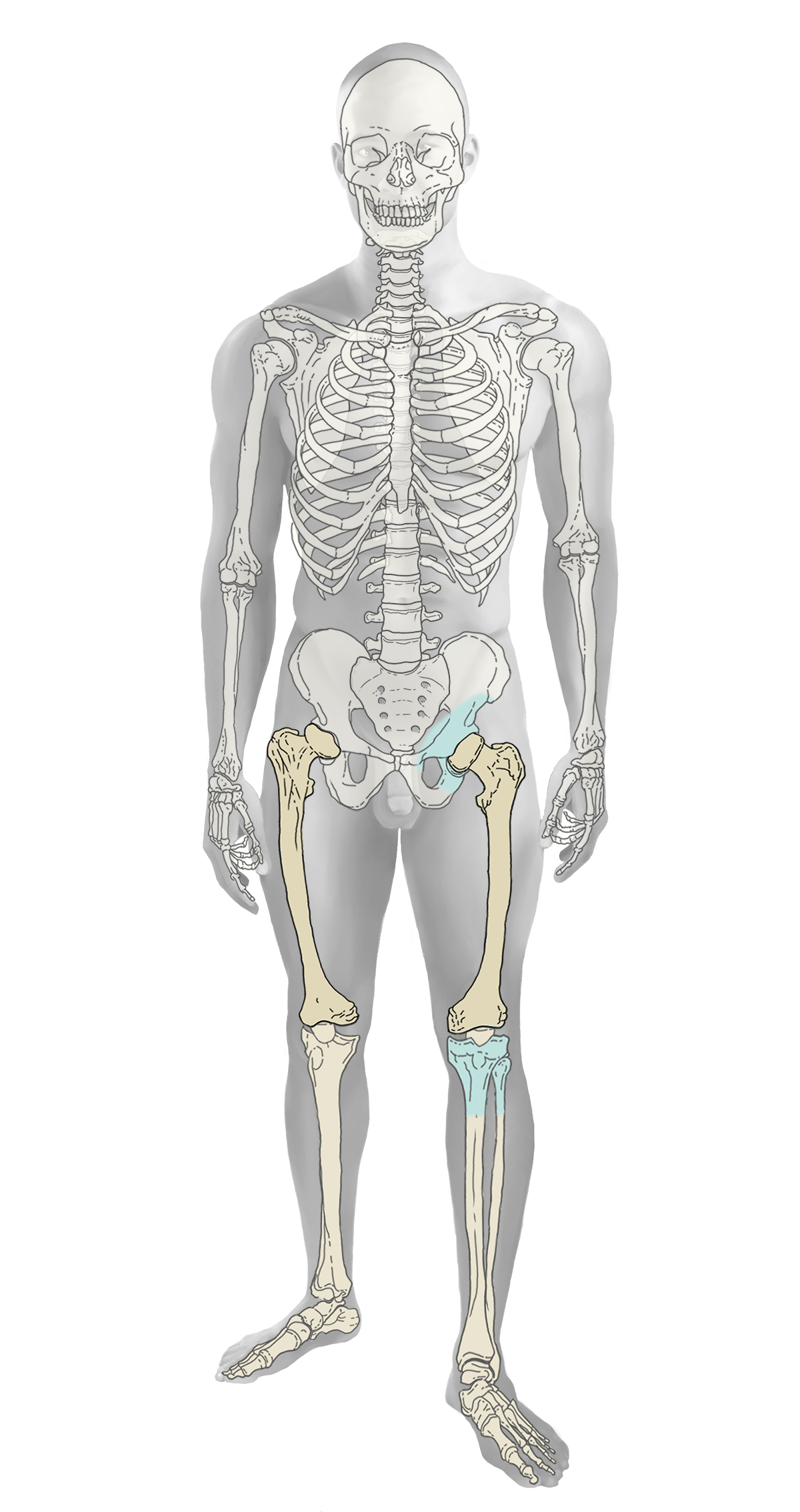 Der Oberschenkel ist der obere Abschnitt des Beines, von der Hüfte bis zum Knie. Der Oberschenkelknochen (Femur) ist der längste und durch seine besondere Bauweise auch der kräftigste Röhrenknochen im Körper. Er macht etwa ein Viertel der gesamten Körperlänge aus. Er besteht von oben nach unten aus dem kugeligen Kopf (Hüftkopf), einem kurzen Hals (Schenkelhals), einen langen Schaft und einem verdickten unteren Ende mit zwei walzenförmigen Gelenkknorren, die mit dem Schienbein und der Kniescheibe das Knie bilden. Der Hüftkopf bildet mit der Hüftpfanne des Beckens das Hüftgelenk. Der Oberschenkelknochen dient ausserdem als Befestigungsanker für Bänder und Muskeln.