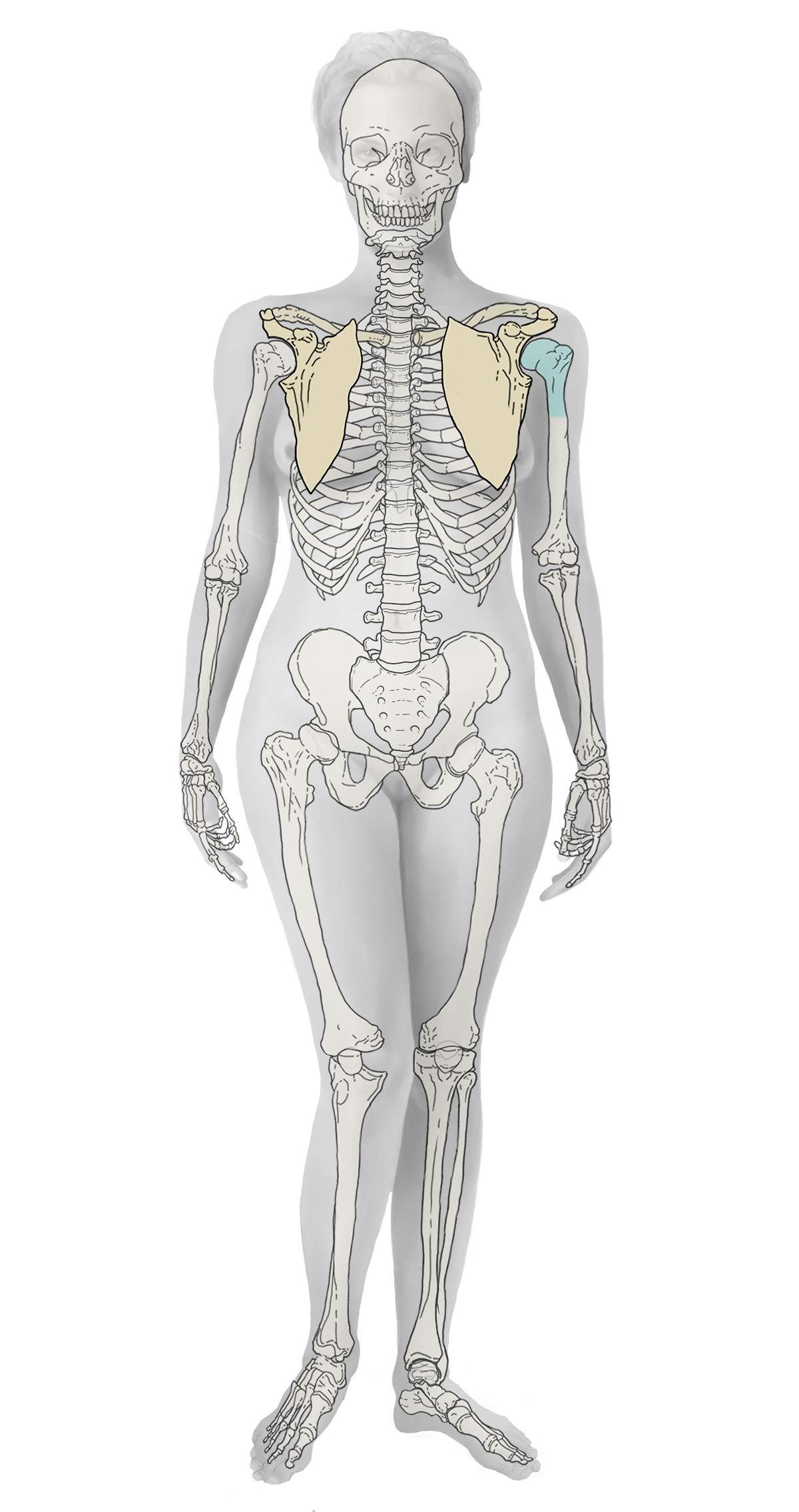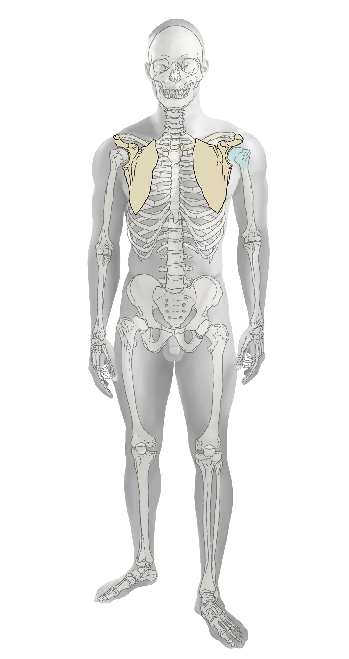 Das paarige Schulterblatt ist ein platter, dreieckiger Knochen, der den hinteren Teil der Schulter bildet und nur durch Muskeln mit der Wirbelsäule verbunden ist. Am seitlichen Rand bildet das Schulterblatt die Gelenkpfanne für das Schultergelenk, in der sich der Kopf des Oberarmknochens bewegt. Auch das Schlüsselbein ist seitlich mit dem Schulterblatt gelenkig verbunden. Über die Schulterblätter sind die Arme mit dem Rumpf verbunden. Ausserdem dient es als Befestigungsanker für die Rückenmuskulatur