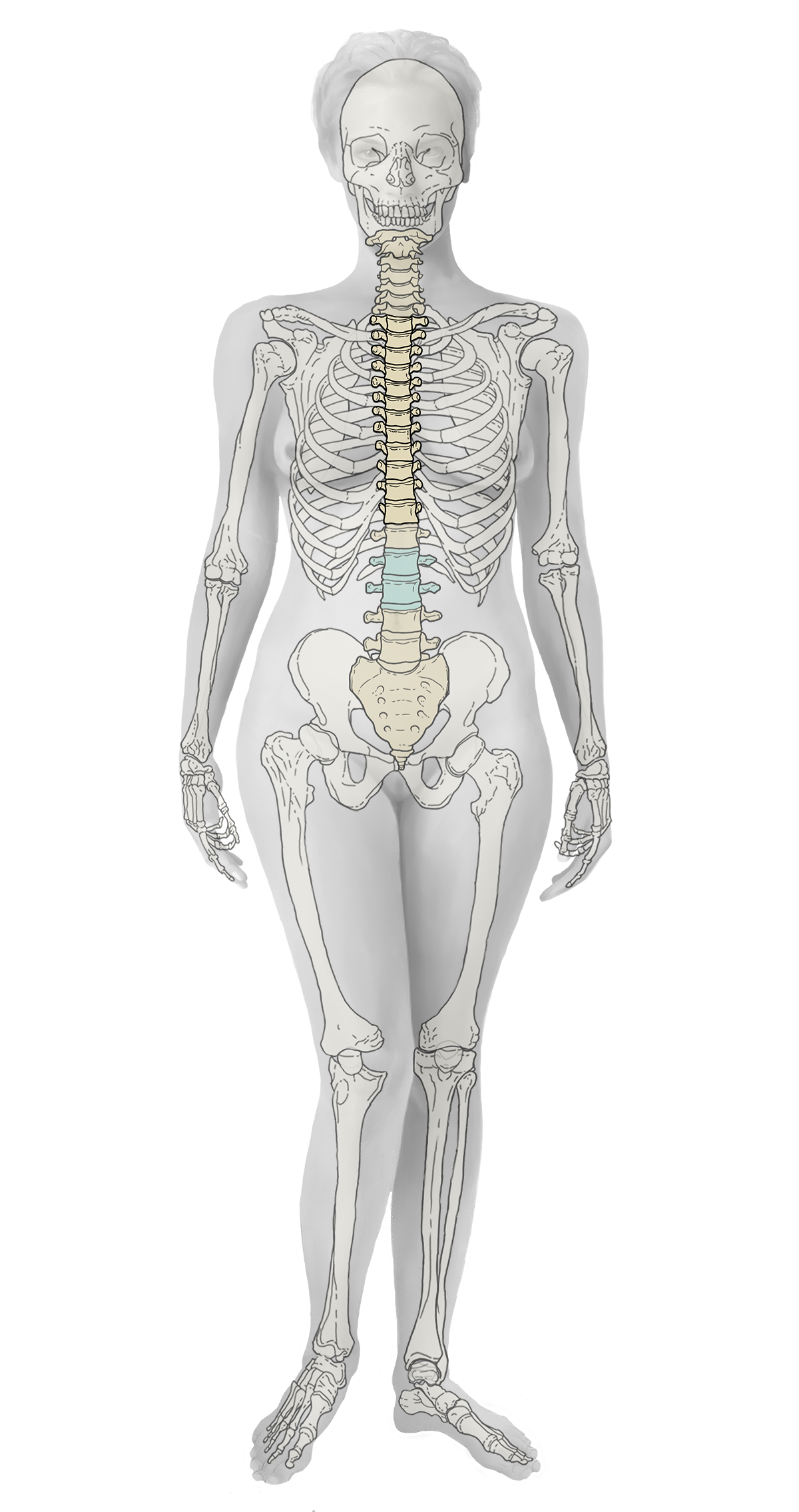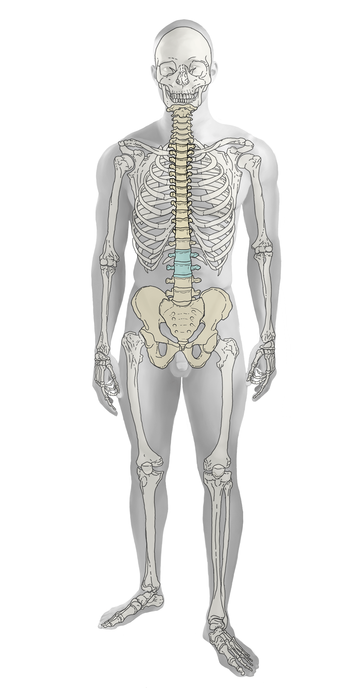 Die Brustwirbelsäule ist der mittlere Abschnitt der Wirbelsäule. Sie besteht aus 12 Brustwirbeln, an denen die 12 Rippenpaare angehängt sind, die zusammen mit dem Brustbein den Brustkorb bilden. Im unteren Bereich der Brustwirbelsäule treten aus dem Wirbelkanal an beiden Seiten die Nerven für die Beine aus.