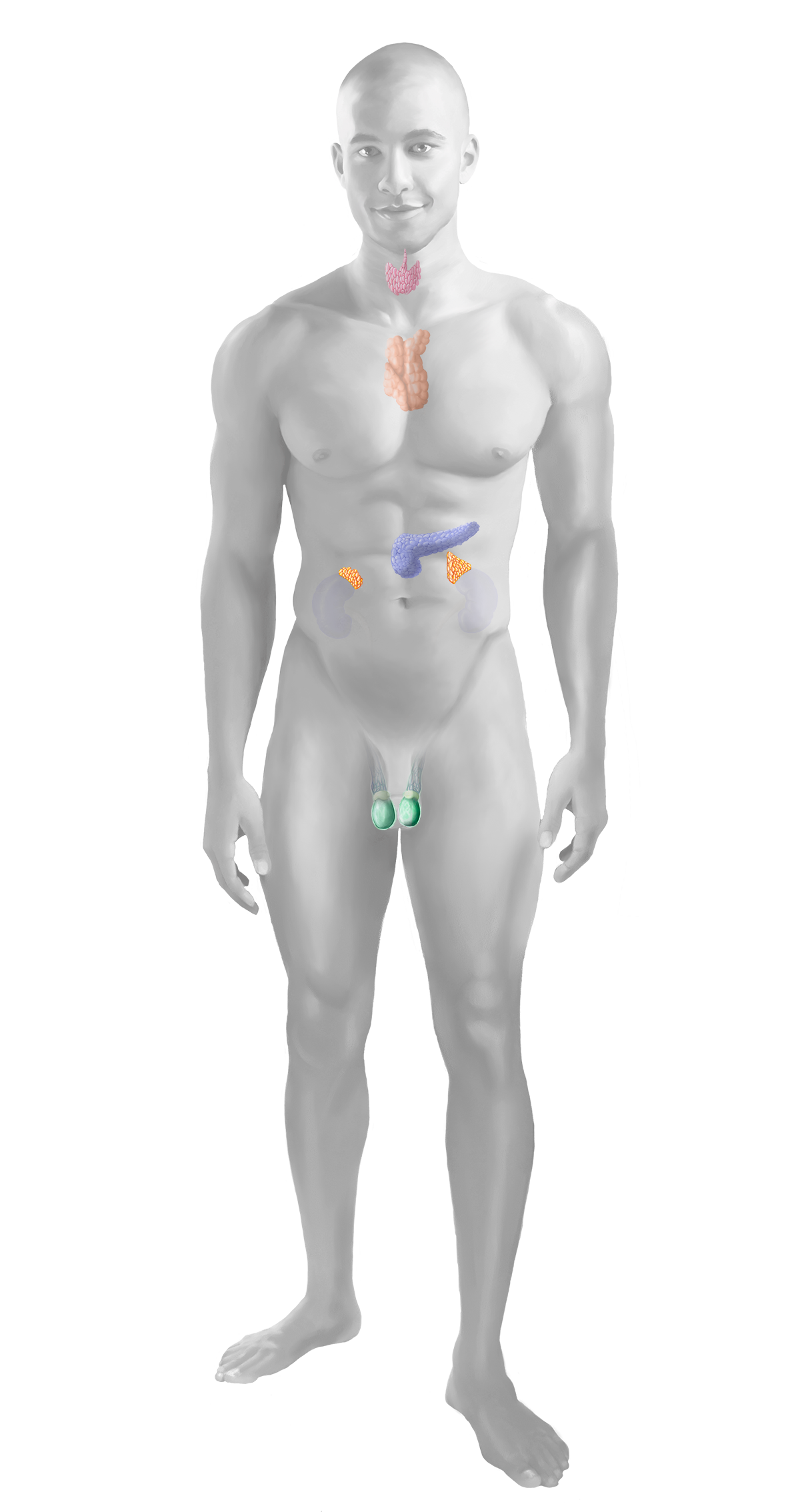Die beiden Nebennieren sind Hormondrüsen und sitzen wie eine Kappe auf der linken und rechten Niere, deshalb die Bezeichnung Nebennieren. Ansonsten haben sie aber nur wenig mit den Nieren zu tun. Die Nebennieren bestehen aus Rinde (aussen) und Mark (innen), die jeweils unterschiedliche Hormone produzieren. Die Nebennierenrinde produziert Glukokortikoide (Kortisol), Mineralokortikoide (Aldosteron) und Sexualhormone, das Mark bildet die Stresshormone Adrenalin und Noradrenalin. Unter den Hormonen der Nebennierenrinde spielt Kortisol die bedeutendste Rolle. Kortisol ist ein lebenswichtiges Hormon, das unter anderem die körpereigenen Energiereserven in Stresssituationen jeglicher Art aktiviert. Ausserdem reguliert es den Blutdruck, beeinflusst den Zucker- und Fettstoffwechsel und hemmt Entzündungsreaktionen. Die Menge des Kortisols wird vom Körper über einen Regelkreis mit zwei Steuerhormonen aus dem Gehirn (Hirnanhangsdrüse, Hypophyse) genau nach Bedarf angepasst. Dies funktioniert ähnlich wie ein Heizungsthermostat zur Steuerung der Raumtemperatur. So wie der Thermostat ständig die Temperatur misst und die Heizung entsprechend hoch- oder runterreguliert, wird im Körper ständig der Kortisolspiegel im Blut gemessen. Wird mehr Kortisol benötigt, wird die Produktion der beiden Steuerhormone erhöht. Ist genügend Kortisol vorhanden, wird sie gedrosselt. Neben Kortisol ist auch das Aldosteron von Bedeutung, das den Salz- und Wasserhaushalt im Körper reguliert und dadurch für einen normalen Blutdruck sorgt. Aldosteron bewirkt, dass die Nieren vermehrt Kalium über den Urin ausscheiden sodass das Kalium im Blut sinkt. Gleichzeitig wird mehr Natrium und Wasser im Körper zurückgehalten. Dadurch erhöht sich die Flüssigkeitsmenge in den Gefässen und der Blutdruck steigt. Natrium und Kalium sind Blutsalze, daher wird das Aldosteron auch "Salzhormon" genannt. Die Menge des Aldosterons wiederum wird durch das Nierenhormon Renin gesteuert. Ist der Blutdruck zu niedrig, schütten die Nieren vermehrt Renin aus, das die Aldosteron Produktion ankurbelt. Durch die genannten Wirkungen des Aldosterons normalisiert sich der Blutdruck wieder. Adrenalin und Noradrenalin haben eine starke Wirkung auf das Herz und die Blutgefässe. Sie regulieren den Blutdruck, den Puls und den Blutzucker. In Stresssituationen werden sie vermehrt ins Blut ausgeschüttet und führen so zur Pulsbeschleunigung und Blutdruckanstieg. Daher werden sie auch als Stresshormone bezeichnet.