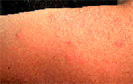 Die häufigste aller Sonnenallergien tritt bevorzugt auf Hautpartien auf, die noch nicht an die Sonne gewöhnt sind (Ausschnitt, Schultern, Nacken). Meist äussert sich die PMD mit Quaddeln, juckende Flecken oder Bläschen.