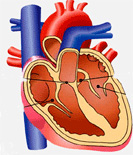Die linke und die rechte Herzhälfte besteht jeweils aus einem Vorhof (Atrium) und einer Kammer (Ventrikel); getrennt werden die beiden Hälften durch das Septum. Über die Venen gelangt das verbrauchte, sauerstoffarme Blut in die rechte Herzhälfte. Von dort wird es zur erneuten Anreicherung mit Sauerstoff in die Lunge gepumpt. Das sauerstoffreiche Blut wird dann über die linke Herzhälfte in die Hauptschlagader befördert und versorgt den gesamten Organismus mit Sauerstoff. Die vier Herzklappen - auf jeder Seite zwei - sorgen als Ventile dafür, dass das Blut in die richtige Richtung fliesst.