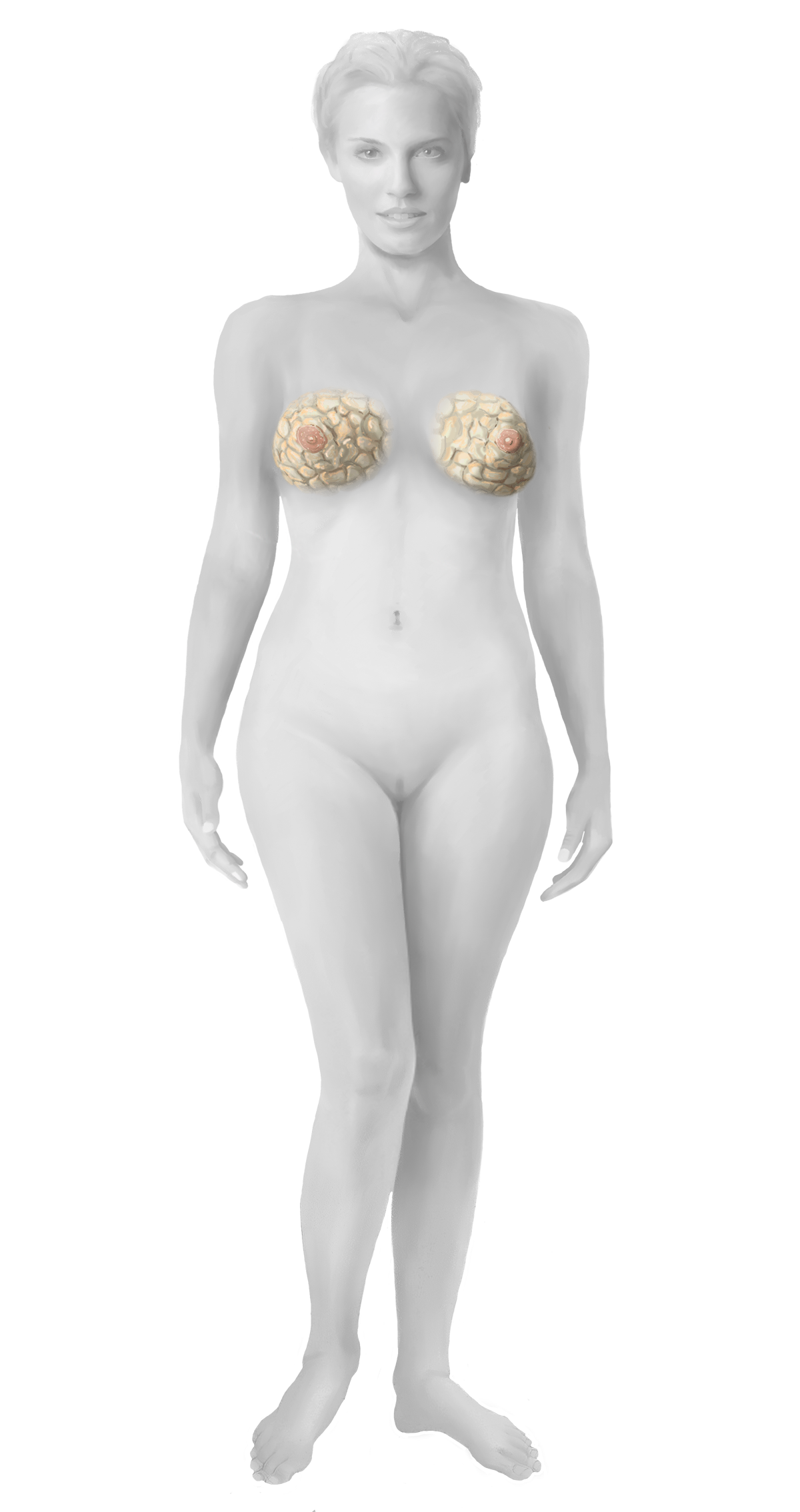 Die weibliche Brust (medizinisch Mamma, daher auch Mammographie) besteht vorwiegend aus Fett- und straffem Bindegewebe, das wesentlich ihre Form und Grösse bestimmt. Darin eingebettet liegt das Michdrüsensystem mit bis zu 20 Milchdrüsenlappen, deren Milchgänge in der Brustwarze münden. Die Brüste wachsen mit Beginn der Geschlechtsreife, gesteuert von den weiblichen Geschlechtsorganen (Östrogen, Gestagen). Das äussere Erscheinungsbild der Brüste - Grösse, Form, Brustwarzen und Brustwarzenvorhof - ist von Frau zu Frau verschieden. Die Hauptfunktion der weiblichen Brust ist die Produktion der Muttermilch zur Ernährung eines Säuglings in den ersten Lebensmonaten. Unter dem Einfluss der Geschlechtshormone vergrössern sich die Brüste in der Schwangerschaft und beginnen kurz nach der Entbindung mit der Milchproduktion, was durch das Hormon Prolaktin aus der Hirnanhangsdrüse in Gang gesetzt wird. Die Milch enthält nicht nur die optimale Mischung aus Nährstoffen sondern auch wichtige Antikörper der Mutter, die das Neugeborene vor Infektionen schützen. Auch während jedem Menstruationszyklus kommt es zu einem Anschwellen der Brüste als Vorbereitung auf eine anstehende Schwangerschaft, die sich mit Beginn der Monatsblutung wieder zurückbildet. Die Brüste werden ausserdem durchzogen von Blutgefässen zur Versorgung mit Nährstoffen und Hormonen und von Lymphgefässen, die das Gewebewasser (Lymphe) zu den Lymphknoten in den Achselhöhlen leiten.