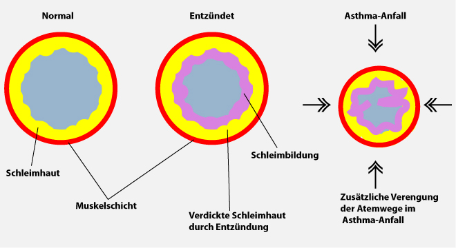 Der Begriff Asthma kommt aus dem Griechischen und bedeutet "schweres Atmen" oder "Atemnot ". In den meisten Fällen lassen sich die Beschwerden mit Medikamenten gut behandeln.