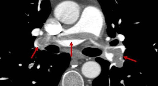 Für die Lungenembolie gilt die gleiche Behandlung. Bei grossem Thrombus (Embolus) in einer grossen Lungenarterie ist eine Behandlung auf der Intensivstation notwendig. Diese Situationen könne lebensbedrohlich sein. Neben kreislaufunterstützenden Massnahmen ist unter Umständen eine Thrombusauflösung (Thormbolyse) oder operativ eine Eröffnung des verstopften Gefässes (Thrombektomie) oder eine Überbrückung des geschlossenen Gefässabschnittes durch einen Venenbypass notwendig. Bei stattgefundener Lungenembolie muss länger blutverdünnt werden.
