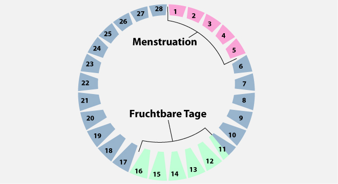 Die menstruelle Blutung ist das äussere Zeichen eines im Körper abgelaufenen Zyklus. Ein normaler, regelmässiger Zyklus (Eumenorrhoe genannt) beginnt am 1. Blutungstag, die Regelblutung (Menstruation) dauert im Normalfall etwa 4 bis 5 Tage und die Zykluslänge (Intervall zwischen zwei Monatsblutungen) beträgt normalerweise 28 Tage.
