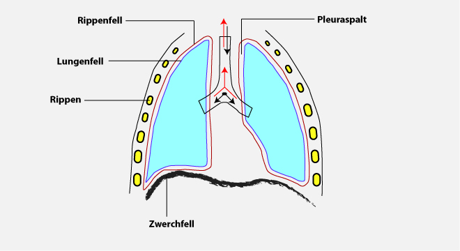 Das Rippenfell (Pleura pulmonalis) bewirkt, dass die Lungenflügel eng am Brustkorb anliegen. Die Lunge kann sich aber bei den Atembewegungen trotzdem leicht verschieben. Das Brustfell (Pleura parietalis) bedeckt die Innenwände des Brustkorbs, die Oberseite des Zwerchfells und den Herzbeutel. Bei der normalen Atmung liegen beide Schichten (das Rippen- und das Brustfell) aufeinander; dazwischen befindet sich ein feiner Flüssigkeitsfilm.