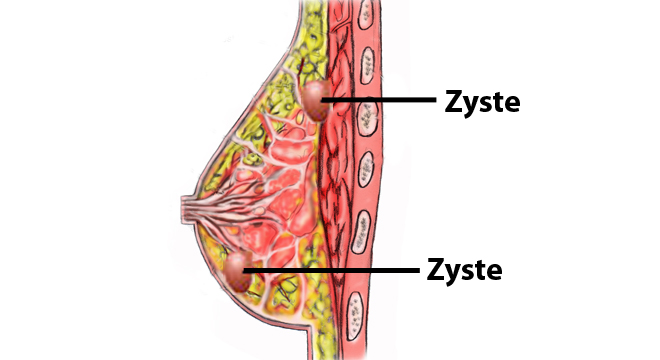 Eine Zyste ist eine von einer Kapsel umgebene, sackartige Geschwulst mit einem dünn- oder dickflüssigen Inhalt. Bei den Brustzysten handelt es sich um gutartige Gewebeveränderungen.