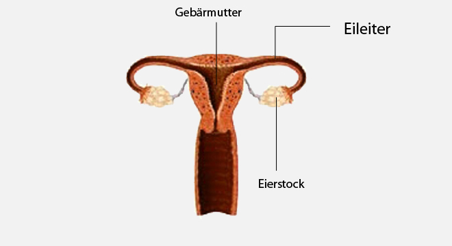 Die beiden Eileiter sind etwa bleistiftdicke Schläuche (Tuben), die seitlich von der Gebärmutter abgehen und mit ihrem freien trichterförmigen Ende den Eierstöcken anliegen. Von dort nehmen sie das Ei auf und transportieren es zur Gebärmutter.