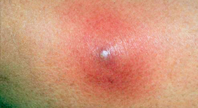 Beim Furunkel handelt es sich um eine durch Bakterien hervorgerufene eitrige Entzündung des Haarfollikels (der Haarwurzelscheide und der Talgdrüsen). Vor allem bei immungeschwächten Personen können mehrere Furunkel gleichzeitig auftreten dann spricht man von einer Furunkulose. Verschmelzen mehrere Furunkel zu einem grossen entzündeten Knoten, entsteht ein sogenannter Karbunkel.