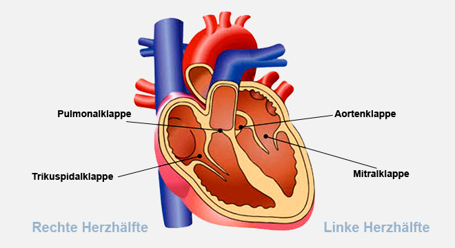 Die vier Herzklappen haben im Herz die primäre Aufgabe, als Ventile den Rückstrom des Blutes in die falsche Richtung zu verhindern.
