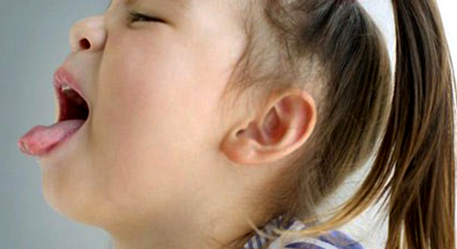 - Das Kind steckt beim Husten die Zunge raus