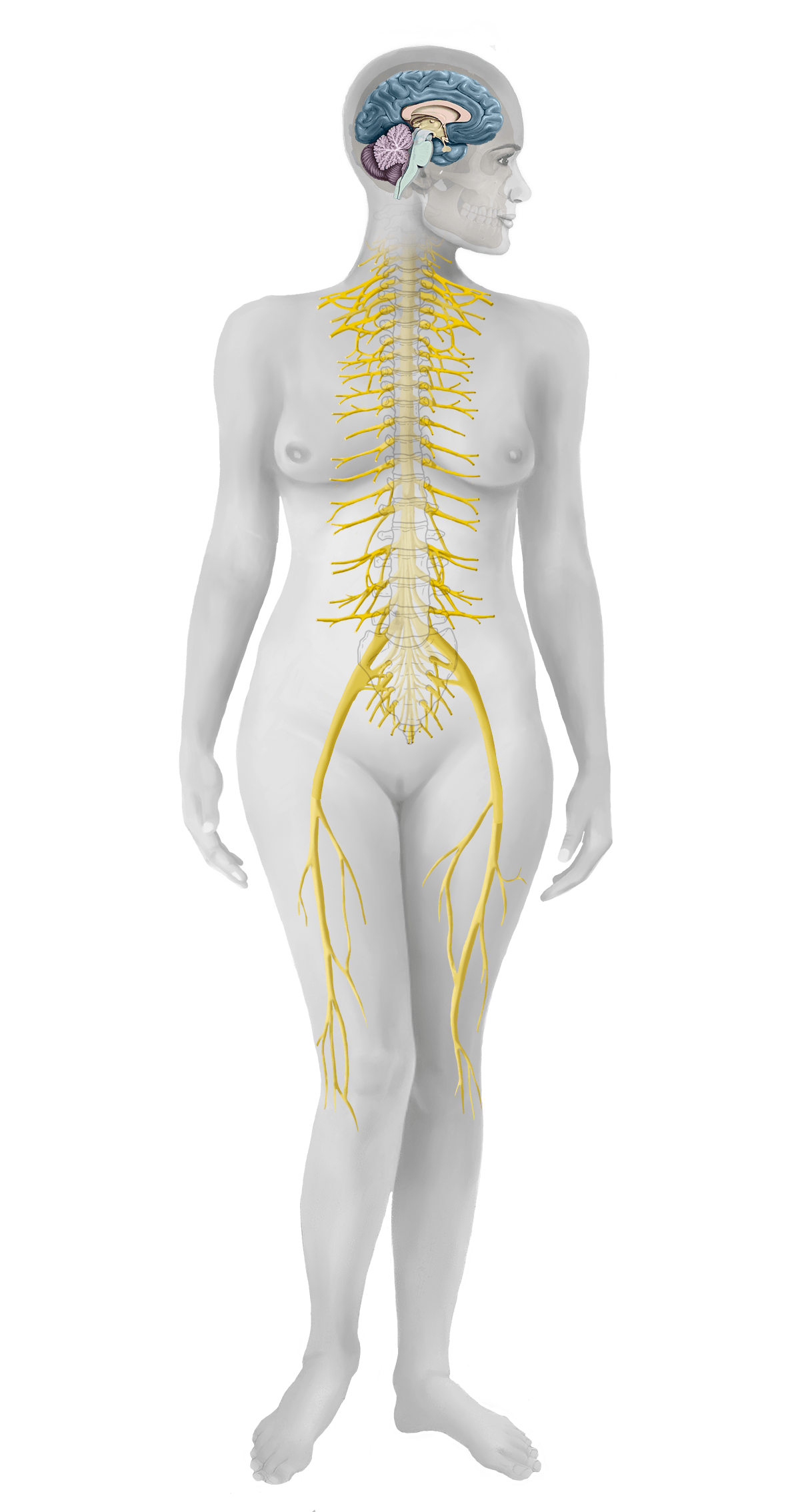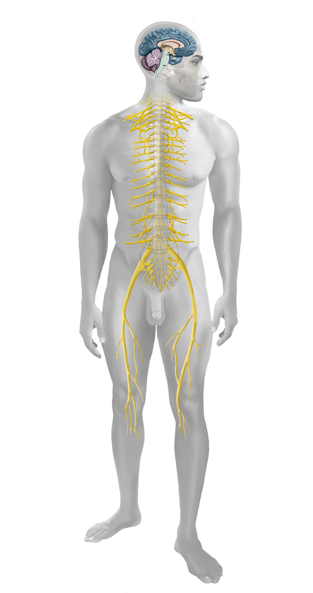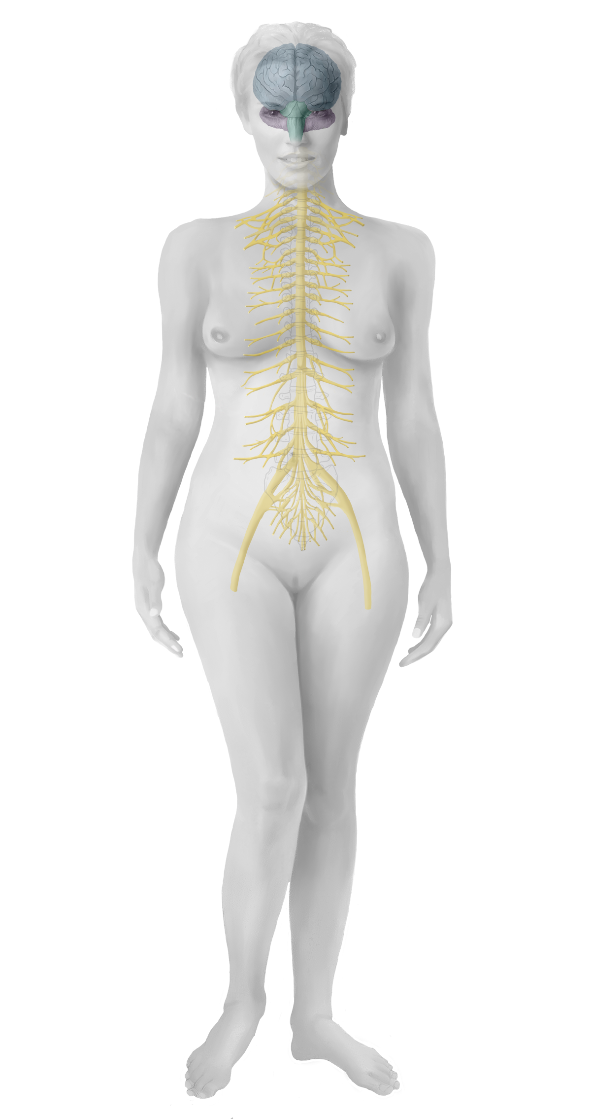 Das Gehirn (Hirn) liegt geschützt im knöchernen Schädel und gehört mit dem Rückenmark zum zentralen Nervensystem. Es besteht grob aus Grosshirn, Zwischenhirn, Mittelhirn, Kleinhirn und Stammhirn. Im Gehirn treffen alle Informationen und Reize aus dem Körper und aus der Aussenwelt (Sinneseindrücke) zusammen, werden verarbeitet und lösen entsprechende Reaktionen aus. Zuständig für all diese Abläufe sind rund 100 Milliarden Nervenzellen (Hirnzellen), die untereinander mit unzähligen Kontaktstellen vernetzt sind und so ein hochkompliziertes elektronisches Kommunikationssystem bilden. Anders als andere Zellen kann der Körper geschädigte Hirnzellen nicht regenerieren. Als Kommandozentrale steuert das Hirn praktisch alle Körperfunktionen, wobei verschiedene Bereiche des Hirns unterschiedliche Aufgaben erfüllen. Das Stammhirn steuert z.B. Atmung, Herzschlag, Verdauung, und andere lebenswichtige Funktionen wie die Körpertemperatur. Das Zwischenhirn ist die Umschaltstelle zum Grosshirn und besitzt an der Unterseite die Hirnanhangsdrüse, die den Hormonhaushalt reguliert. Das Grosshirn steuert die Bewegungen, ist Sitz der Gedanken, Gefühle, des Gedächtnisses und des Bewusstseins. Das Mittelhirn steuert den Schlaf und das Kleinhirn ist für das Gleichgewicht und die Koordination von Bewegungen zuständig. Zur optimalen Funktion ist unser Gehirn auf eine ununterbrochene Sauerstoffversorgung über die Durchblutung angewiesen. Eine Unterbrechung des Blutflusses von mehr als 10 Sekunden führt zur Bewusstlosigkeit, eine Unterbrechung für mehrere Minuten führt bereits zu bleibenden Schäden. Geschützt wird das Gehirn vom umliegenden Schädelknochen und den umgebenden Hirnhäuten, zwischen denen die Hirn-Rückenmark-Flüssigkeit (Liquor) fliesst, um Stösse abzudämpfen. Über den Liquor wird das Gehirn auch mit Nährstoffen versorgt.