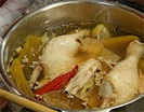 Das Stärkungsmittel schlechthin ist für die Chinesen die aus dem Suppenhuhn hergestellte Hühnerbrühe. Sie wird vor allem in der Rekonvaleszenz (auch nach Erkältungskrankheiten) bevorzugt gegessen. Beigefügte Bocksdornbeeren, die vor dem Servieren beigefügt werden, erhöhen den aufbauenden Effekt. |